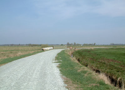 Around this point I came across a chair lying by the side of the road, the concreteness of which saved me somewhat from the escalating abstraction of my thoughts. It didn't strike me as in any way unusual that there should be a chair lying by the side of the road here (I'd remembered seeing it half-submerged in a canal a few weeks ago). I decided to place it in the middle of a field and to sit in it.