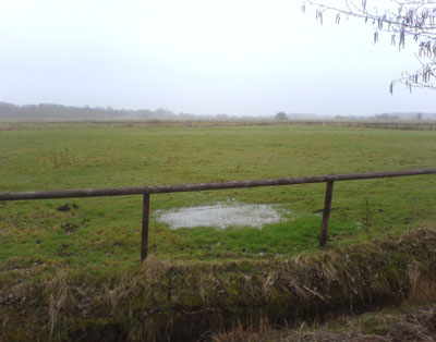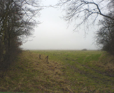 Not for the first time, an image of the nearby field. The first sight of the moor always triggers some sort of response I suppose. It's the very edge of the village, or at least the fence in the foreground is. Beyond this is many kilometres of flat expanse of bog. Looking at the particular photograph afterwards I am struck by how much it resembles a previous one. In fact at one point I wondered if it was a previous one that had got mixed up with today's. But no, the weather's different, and the viewpoint of this one has moved slightly further to the right. Nevertheless it's interesting how a certain fortuitous lining up of the fence in the foreground in relation to the proportions of the field against the sky has once again prompted the impulse to make an image.