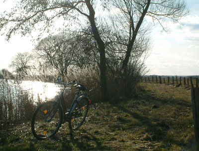 Late afternoon, this time by bicycle. I'd been looking at the map and noticed there was a small river not so very far away. I'd wondered why I hadn't seen it on previous outings. A river seems like something worth seeking out I was thinking, so I sought it out. It didn't take long at all to find it. I just hadn't gone quite far enough before.