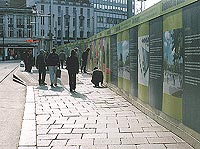 Dave's experiment was to push along a scale model of a National Express coach at what appeared to be a realistic-looking average speed (i.e. if the model was 72 times smaller than a full-sized coach, then it would be driven 72 times slower than, say, 60mph). The model was to be pushed around the entire perimeter of Nottingham’s Old Market Square (apparently one of the largest urban open spaces in Britain and currently closed to the public for renovation work), with the time taken being recorded. Using this figure, and that of the estimated average speed of travel, the total distance covered could then be calculated – thus providing a highly inaccurate and subjective measurement of the perimeter of the square.