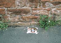 A set of twenty-four photographs were produced with the collective name 'Kofferraum: Interchangeable Landscapes'. Over the course of the weekend closely matching locations were found for most of the images, and the photographs were left in the appropriate places. Many of the them were still in place when the locations were revisted hours or days later, though some inevitably had a shorter lifespan. The remaining images were deposited in the city at a later date.