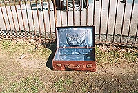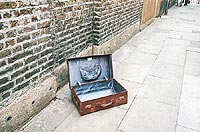 Eva’s experiment was to offer a kind of "mirror" or precursor to the use of the suitcase by the mappers themselves. She would spend time taking a found suitcase around the streets of London and photographing it in various unremarkable locations, empty and opened. The resulting series of photographs would then become the tools for a mapping of Nottingham.