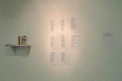 The work also takes the form of a gallery-based installation of six books on a shelf, together with a complete list of the 400 books returned to the shelves.
