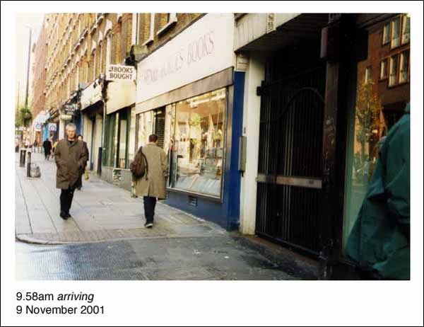 Performative photographic work: my arrival and departure from work was documented from 9 Nov 2001 to 7 Nov 2002. The resulting 398 photographs are presented together with times and dates in a large ring-binder. The title refers to Conceptual artist Douglas Huebler’s famous statement: