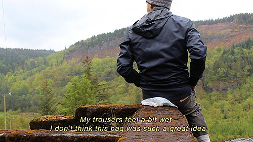 (Three-minute preview of) 20-minute video for projection; features the artist encountering a series of scenes of sublime landscape in Snowdonia, Wales, combined with a soundtrack relaying the artist’s stream of consciousness.