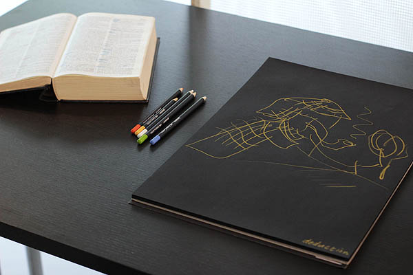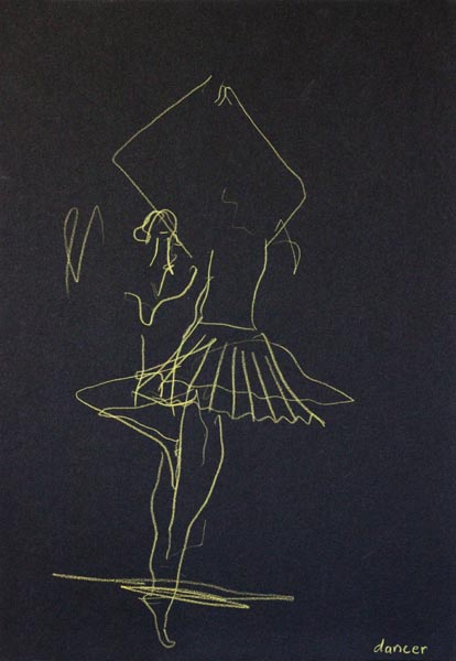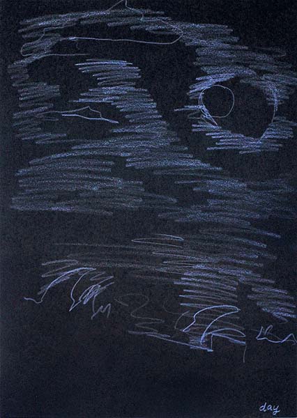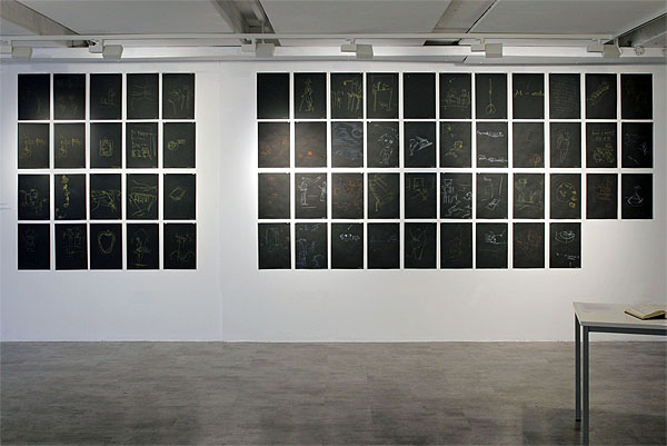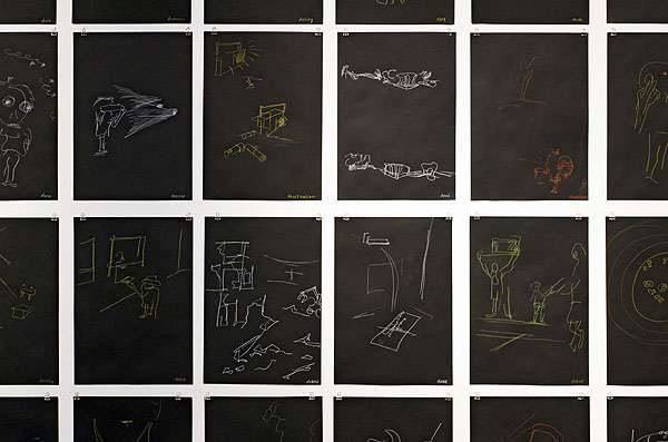 487 drawings for each of the 487 “D”-words in the dictionary; coloured pencil on paper, each 297 x 410mm. The drawings are executed “blindly” (i.e. without looking at the paper).