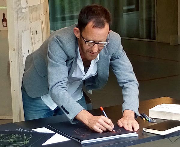 A sequence of blind-drawings were made live at the opening of the exhibition He Told Us to Remain Silent at Feldfünf, Berlin. Before doing the drawing, audience members were invited to share ideas on how the selected word might be visualised.