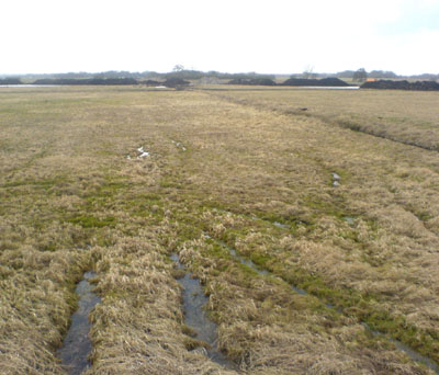 Later on, in order to go further in the direction I was heading, I jumped over a couple of canals. Then on the way back I had to jump back over them in order to return to where I'd come from. At one point during this journey I picked up what I felt was a rather nice stick, then got tired of carrying it, so left it behind. It wasn't such a nice stick after all, I must have unconsciously decided. None of this activity is documented through photographs. |