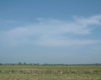 Around this point I came across a chair lying by the side of the road, the concreteness of which saved me somewhat from the escalating abstraction of my thoughts. It didn't strike me as in any way unusual that there should be a chair lying by the side of the road here (I'd remembered seeing it half-submerged in a canal a few weeks ago). I decided to place it in the middle of a field and to sit in it.