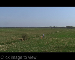 Later I kicked a red ball along the side of an irrigation channel.