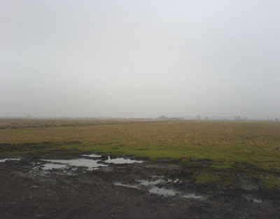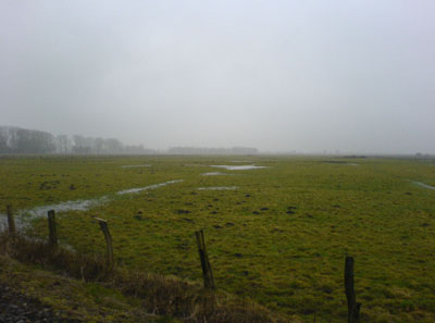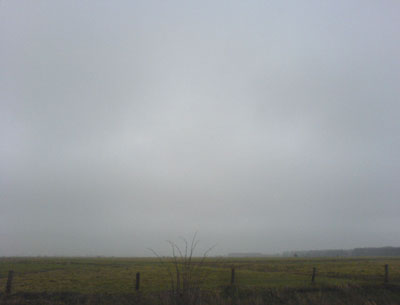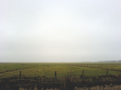 Not for the first time, an image of the nearby field. The first sight of the moor always triggers some sort of response I suppose. It's the very edge of the village, or at least the fence in the foreground is. Beyond this is many kilometres of flat expanse of bog. Looking at the particular photograph afterwards I am struck by how much it resembles a previous one. In fact at one point I wondered if it was a previous one that had got mixed up with today's. But no, the weather's different, and the viewpoint of this one has moved slightly further to the right. Nevertheless it's interesting how a certain fortuitous lining up of the fence in the foreground in relation to the proportions of the field against the sky has once again prompted the impulse to make an image.