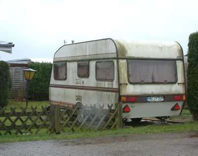 Yesterday I had been away in the city, partly for practical reasons, but perhaps also to try to regain some sense of attachment to the world of human beings. The impact of being away from here and then coming back was noticeable, as I'd hoped. Everything seemed the same, but more so, somehow. Perhaps feeling the tension between city and country (or man-made world and natural world) a little more acutely than before, I found myself drawn to a camping site. Some of the caravans here seemed to articulate something about this dichotomy.