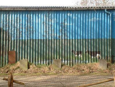 At certain points during these last few days I may have been thinking to myself that I might well have produced some fairly interesting images, in which some kind of profound statement had been made about the relation between the sky, the ground, and the horizon in between. Here is that same sentiment painted onto the side of a barn. By children, quite possibly. This is simply how the landscape looks round here. There's nothing profound about it.