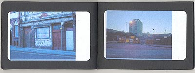 My production began with the intention of it being (whatever form "it" would take) the initial construction of a bridge between myself and an as yet unknown artist. Working under the presupposition that the "stranger" would be from another part of the country I used location, my locality as content. Communicating this environment, an integral part of my life, to someone else for viewing within the context of their own space, and area was my motivation. The intention was to provoke a response from the person, almost on a primitive territorial level challenging them to react with a representation or response of their own. A technique I have developed recently is to film from a plastic carrier bag. As I walk along the viewer perceives a jagged disjointed view of the world, mirroring the dilapidated dystopia of Salford. I filmed streets in the area that are due for regeneration, epitomising the hope and hopelessness that Salford currently balances between. During this process I met some local kids who were interested in what I was doing and convinced me to do an impromptu interview with them about the area. This actually turned out to be the most interesting part of my footage giving a human angle to the problems of en-mass re-housing and regeneration. I then proceeded to film a train journey concentrating on movement, travel and transience. This acted as a kind of closure to my half of the work, a backdrop and rehearsal for the journey I would later take to Doncaster, in this way the work pre-empted itself. I received two pieces back from Anna Pharoah, described in her [criticism] section of this site. I found it intriguing that she had connected to the work on a visual level as well as with issues that I focus on of territory and environment. The visual element of my work is often overlooked and denigrated by myself beneath conceptualism as I search for more and more answers to the many questions I have. As a visual artist this is obviously not ideal and has led me to consider how to integrate complex concepts with accessible and well communicated pieces. |