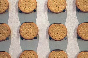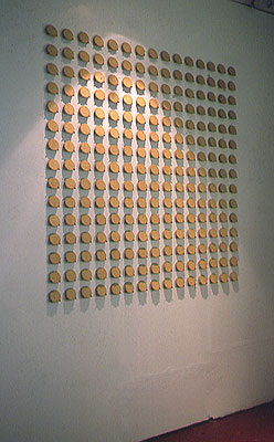 Installation of 225 biscuits nailed to the wall in grid formation, 1.5 x 1.5m.