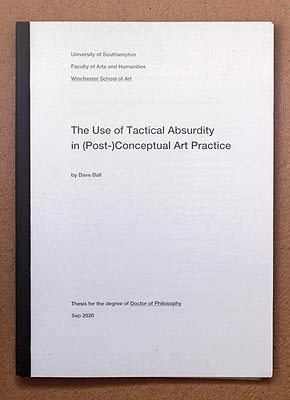 Doctoral thesis The Use of Tactical Absurdity in (Post‑)Conceptual Art Practice, written as part of practice-based PhD research project at Winchester School of Art/University of Southampton.